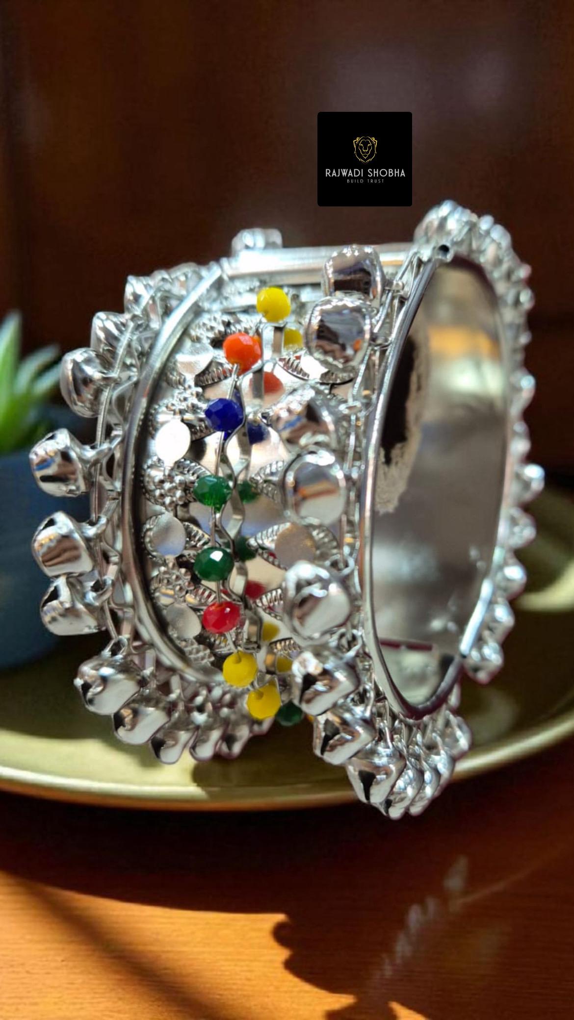 Elevate your accessory collection with these exquisite oxidised silver bracelets, beautifully adorned with delicate beads. The intricate patterns of the oxidised silver create a stunning contrast against the warm tones of the wooden tray, making these bracelets a perfect blend of elegance and artistry. Ideal for both casual and formal occasions, these bracelets not only enhance your style but also serve as a timeless statement piece that complements any outfit. Embrace the charm of handcrafted jewelry and make these unique bracelets a staple in your wardrobe.